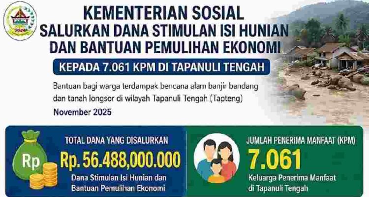 Kemensos Salurkan 56.488 Miliar Dana Stimulan Isi Hunian Dan Bantuan Pemulihan Ekonomi 7.061 KPM di Tapteng Nusantara|25 April 202625 April 2026oleh Jurnalis Polisi News POLISINEWS.COM | TAPTENG. Kementerian Sosial (Kemensos) RI menyalurkan Dana Stimulan Isi Hunian