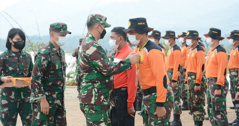 SUMEDANG I POLISI NEWS. Kasdam III/Siliwangi Brigjen TNI Kunto Arief Wibowo menutup latihan pertolongan dipermukaan air bagi pencarian dan pertolongan Potensi SAR yang berlokasi di Waduk Jatigede Dusun Cisema Desa Pakualam Kecamatan Darmaraja Kab. Sumedang, Sabtu (6/2/2021).