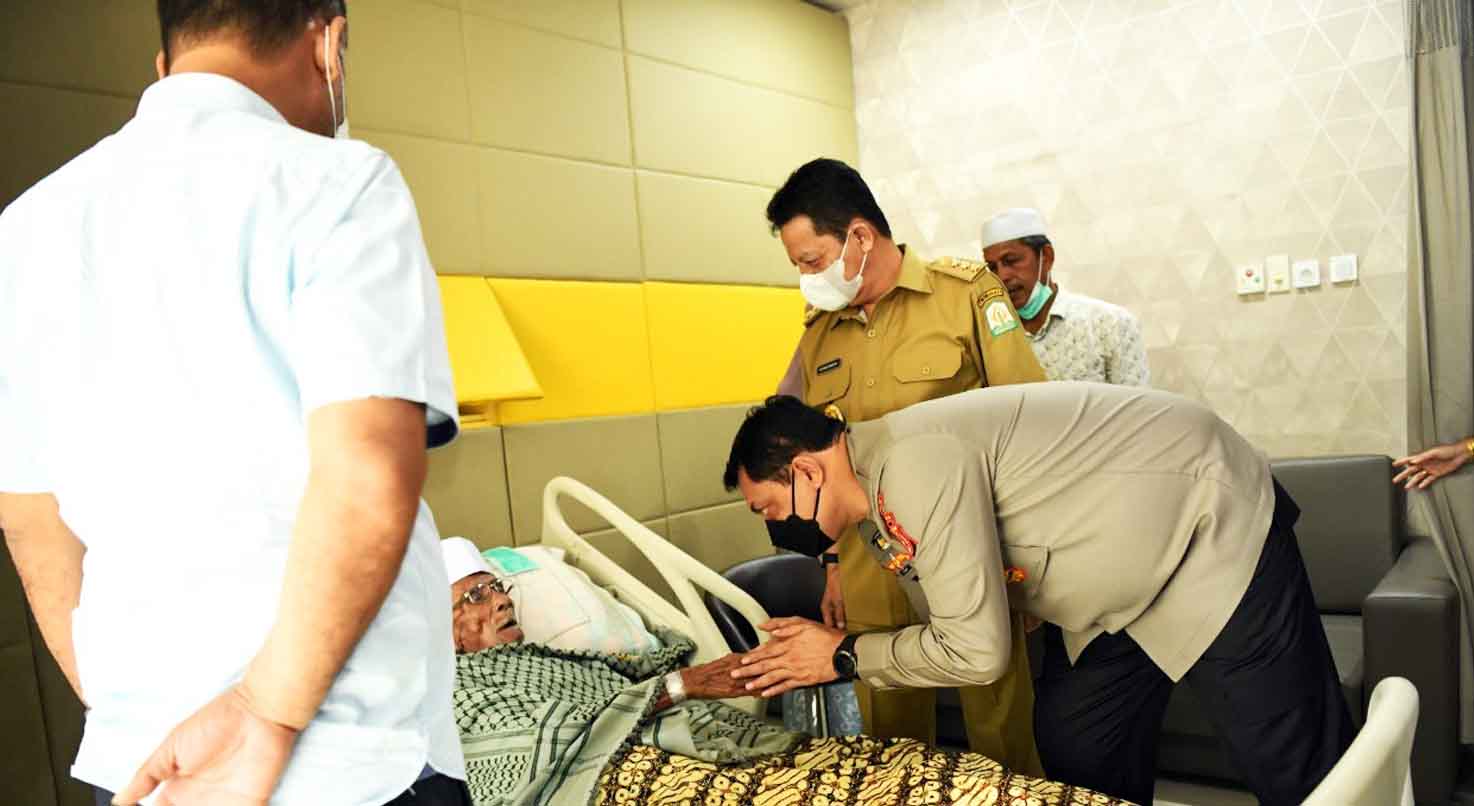 POLISI NEWS | BANDA ACEH. Pj. Gubernur Aceh Achmad Marzuki bersama Kapolda Aceh Irjen Pol. Drs. Ahmad Haydar, S. H., M. M, menjenguk ulama kharismstik Aceh, Abu Tumin yang sedang sakit dan saat ini dirawat di RSU Zainoel Abidin Banda Aceh, Selasa, tanggal 30 Agustus 2022.