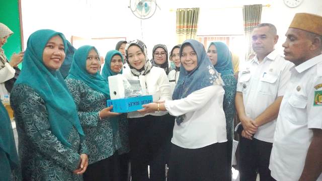 3. Dinas PMD memberikan bantuan 40 stel baju olahraga dan 50 stel baju batik kepada kader PKK Desa Stabat Lama.