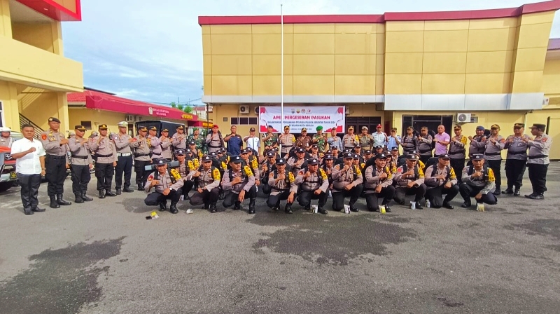 Sebanyak 140 Personel Polres Sibolga terlibat dalam Operasi Mantap Praja (OMP) Toba 2024. Apel ini bertujuan untuk mengecek kesiapan Personel, sarana, dan prasarana, seperti perlengkapan Dalmas dan Mobil Dinas lainnya, guna memastikan situasi kamtibmas kondusif, selama Pilkada serentak 2024 berlangsung.