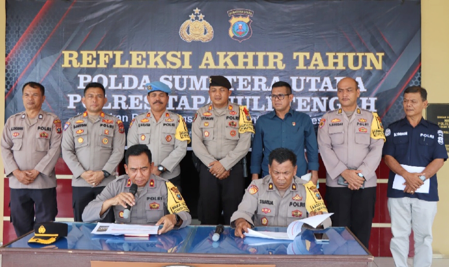 Konferensi Pers akhir tahun Kepolisian ini mengangkat tema “Hadirkan Polisi Transparan, Akuntabel dan Profesional” turut dihadiri oleh Pejabat Utama Polres Tapteng dan Media.