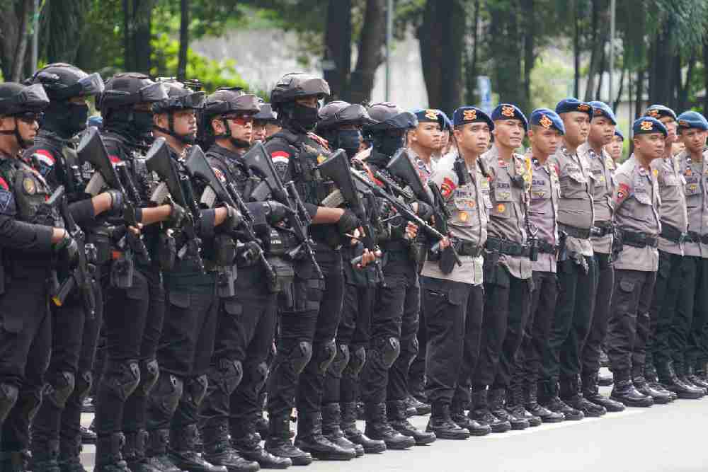 Komandan Satuan Brimob Polda Metro Jaya, Kombes Pol. Henik Maryanto, S.I.K., M.Si., menyampaikan bahwa Satuan Brimob Polda Metro Jaya mengerahkan personel lengkap dengan perlengkapan taktis, termasuk kendaraan roda dua jenis trail dan pelontar gas air mata sebagai antisipasi terhadap potensi ancaman yang mungkin timbul di lapangan.