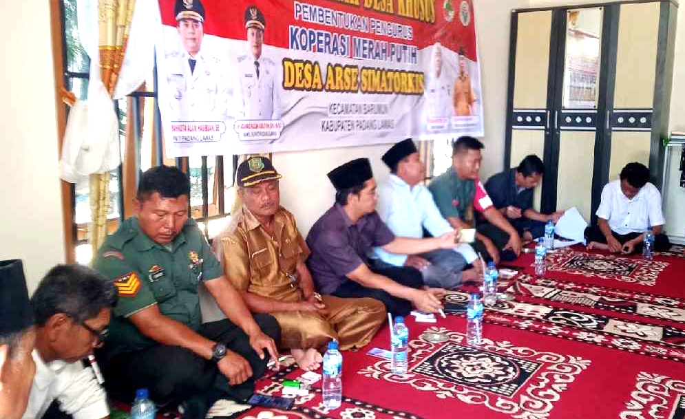 POLISI NEWS | PADANG LAWAS. Desa Arse Simatorkis mengadakan musyawarah desa khusus untuk membahas pembentukan Koperasi Merah Putih acara digelar dikediaman kepala desa Arse Simatorkis Ali Sakban harahap. Selasa 27/5/2025 Pada kegiatan musyawarah ini dihadiri oleh Camat Barumun yang diwakili oleh Arda Dongoran, dan Babinsa Jismi Mubarok, serta tokoh masyarakat Junaidi Ar-Rasyid Harahap, dan TA Saharuddin Sahala SH Hasibuan, serta Pendamping kecamatan Rina.
