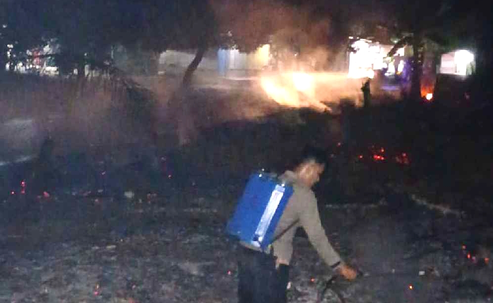 Bhabinkamtibmas Polsek Sosa, Bripda Willy Hidayat, segera mendatangi lokasi kebakaran dan membantu memadamkan api yang masih menyala bersama warga masyarakat setempat. Api berhasil dipadamkan dalam waktu sekitar 15 menit.